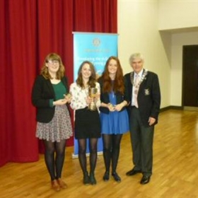 Photo: L-R Lily Howells, Holly Gardiner, Alice Grierson and a Rotary dignitary after the girls won the East of England final.