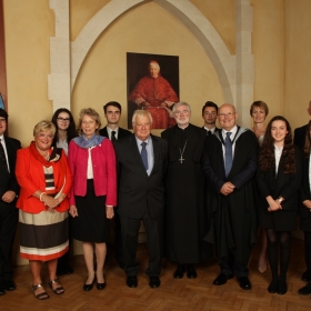 St Benedict’s School celebrated a wonderful academic year 2014/15 at the Senior School Prize Giving on Wednesday 9th September. Lord Patten of Barnes, the school’s most eminent alumnus, was the Guest of Honour. The National Anthem was sung with perhaps more emotion on this particular day, when HM The Queen became the longest-reigning monarch in British history. Continuing with the royalty theme, it was fitting that the choral presentation at the start was ‘Zadok the Priest’, that wonderful coronation march by G. F. Handel, which was played as The Queen walked up the aisle in Westminster Abbey on 2 June 1953. The Chair of Governors, Patrick Murphy-O’Connor, welcomed the assembled parents, staff, students and guests and then Chris Cleugh, Headmaster, gave his address, detailing the many successes of the past academic year and outlining plans for the future. These focused on five major priorities: a successful outcome to the impending ISI Inspection; to achieve our academic targets by continuing to deliver high quality teaching and learning across the Junior and Senior Schools, balanced by the continuation of our extensive co-curriculum programme; to strengthen our links with other EBC Schools through the Centre of Benedictine Education and to fully implement our Chaplaincy development plan; to prepare the new ADT and Sixth Form Centre for use by our Sixth Form from half-term and for the ADT department by January 2016; to ensure a smooth transition to the new Headmaster, Andrew Johnson, who will take over in September 2017. Lord Patten gave the final address which included not only his memories of his “blissfully happy” childhood at St Benedict’s but also how his time at St Benedict’s, more so even than his studies at Balliol, formed him for life. Considering his career, this was quite an endorsement of the Benedictine way of living. He gave advice to the assembled students: “Seize the opportunity to do good in small things as well as great.” Lastly he paid tribute to Mr Cleugh, whose last prize-giving it was, for his successful stewardship of the School since his appointment in 2002. Following Father Abbot’s Blessing, the school hymn ‘Reigning in glory, Benedict our Father’ was thundered out by over one thousand voices. It was a fitting finale to a wonderful evening.