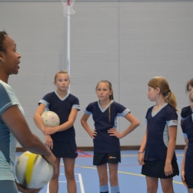 We were delighted to welcome Netball Champion Pamela Cookey* to open the new Kent College Sports Hall and to join us for a day of celebration by hosting a variety of netball workshops and coaching opportunities. The day started with a whole school assembly from the PE department who introduced her ahead of officially opening the Sports Hall with the cutting of a ribbon between the current and new Sports Hall. This state-of-the-art facility will bring even more sporting glory to KC by providing more opportunities for play and training. Pamela then led a host of netball workshops and Q&A session with girls from both the Prep and Senior School before acting as referee for some fabulous lunchtime matches between KC Mums V KC Staff and KC Old Girls V KC Current Girls, cheered on excitedly by the girls. We were thrilled to welcome back recent leavers and to have the KC mums join us for this great day of celebration. *Pamela is currently captain of the hugely successful national netball team and fast approaching 100 caps. The shooter is a fantastic role model for young sport enthusiasts as her irrepressible enjoyment of the game is apparent due to the constant smile on her face. Since her debut in 2004, Pamela has been indispensable to the England squad and is rightly regarded as one of the finest goal attacks in the world. The 2010 Commonwealth Games saw England win a bronze medal