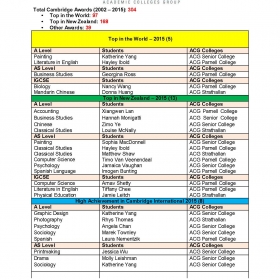 Total Cambridge Awards (2002 – 2015): 304 • Top in the World: 97 • Top in New Zealand: 168 • Other Awards: 39