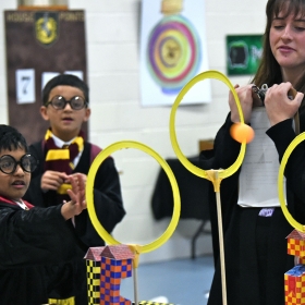 Bishop's Stortford College Festival of Literature was launched this year with a Harry Potter Book Night for Prep School. Coinciding with Harry Potter Book Nights across the globe, pupils arrived in the in the Prep School Hall dressed the part for a night of wizarding. The Hall had been transformed into Hogwarts Hall, with thanks from Mrs Moon and Mrs Poulter. Each corner of the Hall was dedicated to one of the Hogwarts Houses. There was a Potions Shop, where pupils created spellbinding bubbling, purple liquids they stirred in a cauldron under the instruction of the potions mistress! There was also a Diagon Alley and even a Dementor lurking. Everyone enjoyed game of Quidditch too. After the pupils had been put into Houses by the sorting hat, they competed in challenges including a wizarding worksheet and a potions quiz – Ravenclaw won by a narrow margin. Mrs Pike, Festival Co-Ordinator and Prep School Librarian extends her ‘thanks to everyone who helped to make it such a brilliant night’.