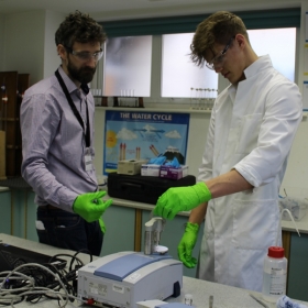 Two events on the same day brought Chemistry students’ laboratory work to life by showing the real world application of theories and skills they have mastered in lessons. Four Second Year pupils represented the School at Salter’s Festival of Chemistry at the University of York, while A Level students used a University of Bradford spectrometer to inspect the purity of samples they had created in the School laboratories. Pocklington School Second Year Students at Salter's Festival of ChemistrySecond Years Kate Scott-Clappison, Zac Stewart, Will Jones and Eve Levitt competed against other local schools in the Salter’s Festival, which involved using their knowledge of Chemistry to solve two enjoyable challenges. They then listened to a lecture about colour; how fireworks relate to chemistry and how bioluminescence works. They also had a look at different acidities and alkalis and how they react with different indicators. Kate said: “Overall we had a great day and I think we did well. We were very close to a competition prize but sadly did not quite reach our target.” Meanwhile, the practical skills of Pocklington School A Level students were put to the test when the Royal Society of Chemistry sent an expert from the University of Bradford to help them test the purity of aspirins they had synthesised in lessons. Students experience real-life Chemistry in actionJames Machell brought an Infrared spectrometer to inspect their results, as part of the Royal Society-supported Spectroscopy in a Suitcase scheme. The scientific measurement technique records how molecules respond to infrared light, and each student used it to analyse their aspirin sample. Tiny traces of other substances were identified, showing an average 50% purity. IR spectroscopy has a wide range of applications in both research chemistry and wider society. It’s used to help identify the structure of complex molecules in space, to analyse works of art and in Formula 1 motor racing. Many breathalysers used by police forces to determine levels of alcohol in breath are IR spectrometers. James also brought a powerful NMR (nuclear magnetic resonance spectroscopy) machine with him to the School chemistry labs. He showed students how it works and discussed its use in chemical research at the University. The NMR is used to determine how proteins fold, twist and coil, and to evaluate the proportions of solid and liquid components in fatty foodstuffs such as margarines and low-fat spreads. NMR is also used a lot in pharmaceutical sciences and medicine, for example: the diagnosis of tissue abnormalities and body scanning by magnetic resonance imaging (MRI). Jenny McDowell, Head of Chemistry, said: “Both experiences were most enjoyable and valuable for our Chemistry students. The Second Year team did tremendously well and learned a great deal, and our Upper Sixth students were able to appreciate the important use of the spectroscopy equipment in research, medicine and other areas to benefit our lives.”