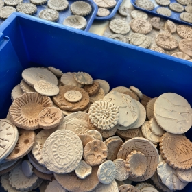 The whole Kingshott School community has worked hard on a collaborative Art project to celebrate the Queen’s Platinum Jubilee. Every pupil in the school from nursery to year 8 along with staff, admin and site staff have all made a small clay circle with their own personal design on it. The discs were then glaze and have been assembled into a special piece of Artwork which will was revealed on the last day of the half term during the school's celebratory tea party. As a school it has been a lovely way for everyone to come together to celebrate the wonderful sense of community, commitment and dedication the Queen has shown during her 70 years on the throne.