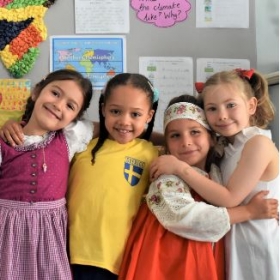 The classes celebrated by making perfumed pouches called xiang bao which are thought to bring good luck and ward off bad spirits. On Friday's International Day the school was alive with colour! Children and staff dressed in costumes to represent countries from around the world including Ukraine, Japan and India and our chef cooked a Caribbean themed lunch of jerk chicken with rice and peas.