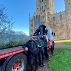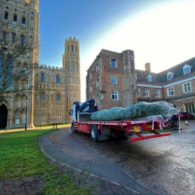 27ft Christmas tree arrives at King’s Ely’s Old Palace