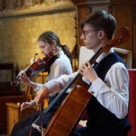 Eva opened the concert with a selection of works for solo piano by Bach, Chopin and Debussy. Mr Randle praised the clarity, precision and contrast of her playing, describing her performance of Bach as like ‘a conversation with an old friend’. The Chopin was beautifully projected, with a soaring melody and deft and sensitive accompaniment. In the playing of Reflets dans l’eau by Debussy, Eva painted a vivid picture for the audience with a wonderfully communicative performance, her performance finished with a lengthy and warm applause.Following Eva, cellist Harry began his recital with an arresting piece for singing cellist by Giovanni Sollima, Lamentatio, which really took the audience out of their comfort zone – a bold choice which was met with a very warm response. Harry then returned to the more familiar voices of Bach and Brahms, accompanied by Mr Scott Burt, which were a joy to listen to. Mr Randle described his performance as ‘intimate and personal’, and ‘full of energy and vitality, displaying musicianship well beyond [his] years’.