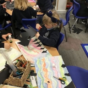 This week in Geography, Year 1 continued their Polar Environments topic by learning all about the Aurora Borealis. They learnt about where the Aurora Borealis come from and created their own Arctic art using watercolours and black card as the silhouettes of trees and mountains to create their own Arctic scenes.Miss Pople, Year 1 Class Teacher