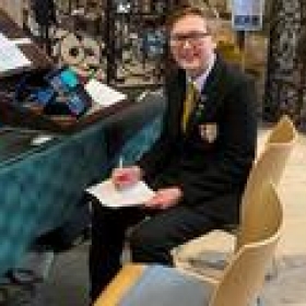 We were hugely proud of the following students, who contributed brilliantly to the Cathedral Eucharist on Sunday 9th October. It goes without saying that we were just as proud of our Cathedral Choristers, who work tirelessly week in, week out, with a particular shout out to this service's soloists, Emily and Poppy.Firstly, Jaymie G (Year 9) who regularly supports the Cathedral's live-streaming of services – I could not resist getting a photograph of him in action! He has been learning the ropes and now is trusted to take charge of the different camera shots and subtitling, which is no mean feat! Secondly, Amaris O (Year 10), Elizabeth O (Year 9) and Daniel G (Year 8) who read the prayers so confidently and beautifully. Finally, Felix C (Year 10) who played his violin superbly with a performance of Adoration by Borowski.