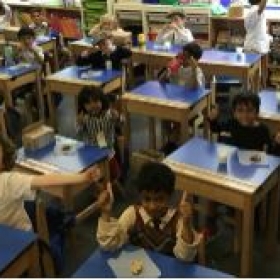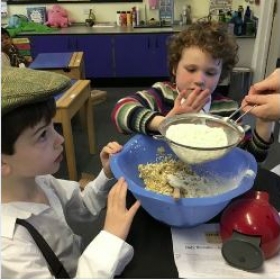 PP2 (year 2) were evacuated to other classrooms and wrote letters 'home'. They followed a wartime recipe and made war time biscuits. They had to carry their gas masks everywhere and listen out to take cover when they heard a siren. They also had a go at cracking some Morse Code and played some war time games like rounders, snakes and ladders, marbles and jumping jacks.