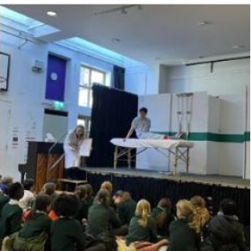 First they had a French lesson taught by our Year 10 French pupils and then both schools enjoyed a fun French performance of ‘Parlez-vous français?’ by Onatti Productions.