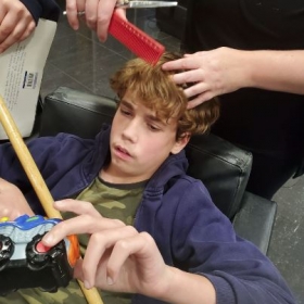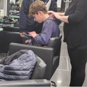 Joe and William, both of whom are in Millington House at Prior's Court, went to The Cutting Bar in Newbury for their first hair cuts in a long time. For Joe, this is the first time he has set foot in a barbershop since he was two years old. He is now 13. William, who is also 13, has not been to a barbershop since he was seven.