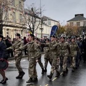 Organised by the Royal British Legion of South Molton and invIted by the Town Clerk, Andrew Coates, Pilot Officer (RAFAC) Liz Cwilewicz, the Contingent’s Staff School Instructor, proudly lead the 15 smartly dressed cadets, from both the Army and RAF Section, onto the parade. The cadets were beaming and ready to go for the short circular parade leading into the well-attended Pannier Market with over 80 attendees.