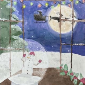 Stunning designs in the Winter Arts competition, won this year by Emily Hunter with her snowy forest season. Genevieve Giraud’s owl made second place and Florence Jones’ Santa on his sleigh was third. Congratulations all!