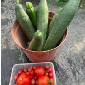 The chickens have never had so much love and never have so many children been so excited about runner beans! They all asked if they could eat them, as well as gobbling cherry tomatoes and blackberries. Sadly we were having too much fun to take many photos but we’ll get some next week, I promise! In the meantime enjoy a stunning view of the downs, a bumper crop of cucumbers, Maivis (the favourite bantam) and a late summer butterfly.