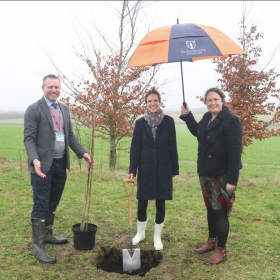 Commenting on the planting Jane Gandee said, “Despite challenging weather conditions, we were delighted to welcome David and to plant two beautiful trees as part of our ongoing commitment to sustainability and protecting our environment. We hope our students can enjoy watching the trees grow and see similarities in the positive impact they can have on the world over future generations.”