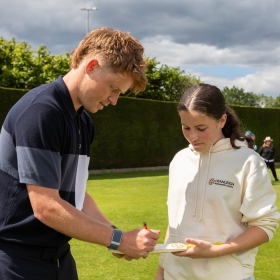 Ollie, who left the School in 2016, watched home cricket matches and signed bats for younger pupils, as well as meeting the Girls First XII. Many of his former classmates watched him take part in a Q&A with retiring Head, Martin Reader, before he cut the ribbon on the new facility.