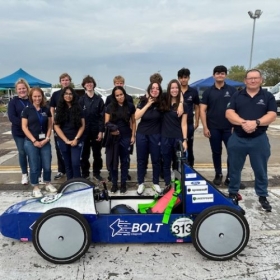 On Sunday 22nd September, the Chigwell Greenpower team raced the ‘Chigwell Bolt’- an electric kit car built by the pupils- at the Lotus test track in Hethel, Norfolk.Following an early start, the 9 pupils and accompanying staff (Mrs Jermyn, Mr Dickins, Mrs Robertson and Mrs Carr) arrived at the event whereby the ‘Scrutineering’ team passed the car with flying colours.