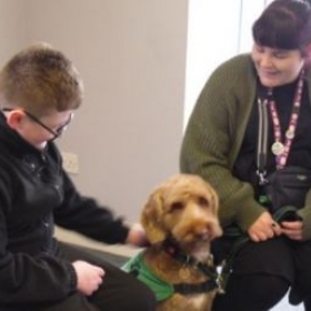 Our therapy dog, Dougal, has started doing 'Dougal Drop-In' sessions for students when they arrive in the playground at the beginning of the school day.